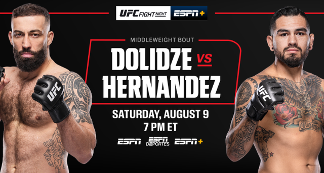 Watch UFC on ESPN: Dolidze vs. Hernandez 8/9/25 Match Fight Card
